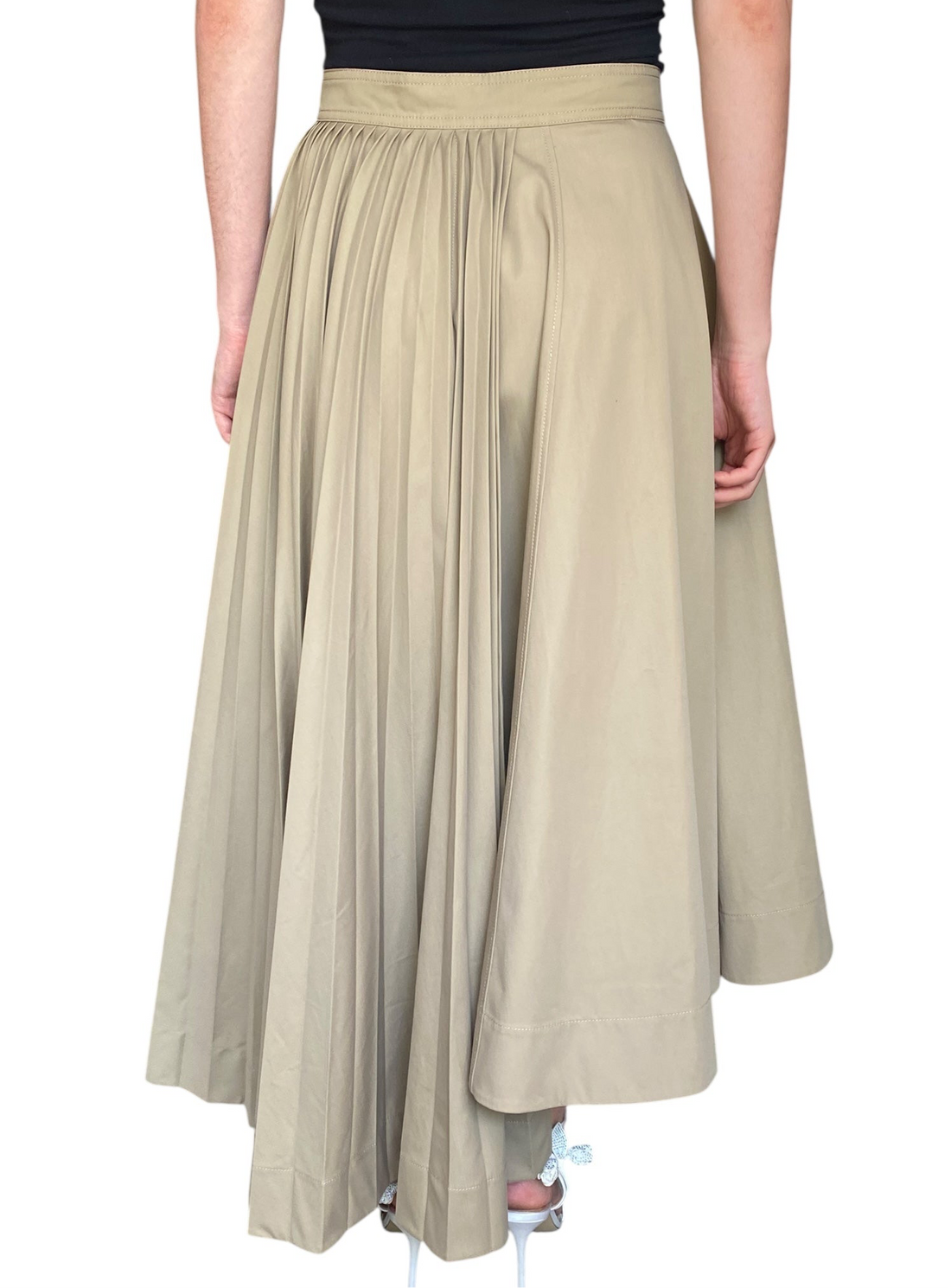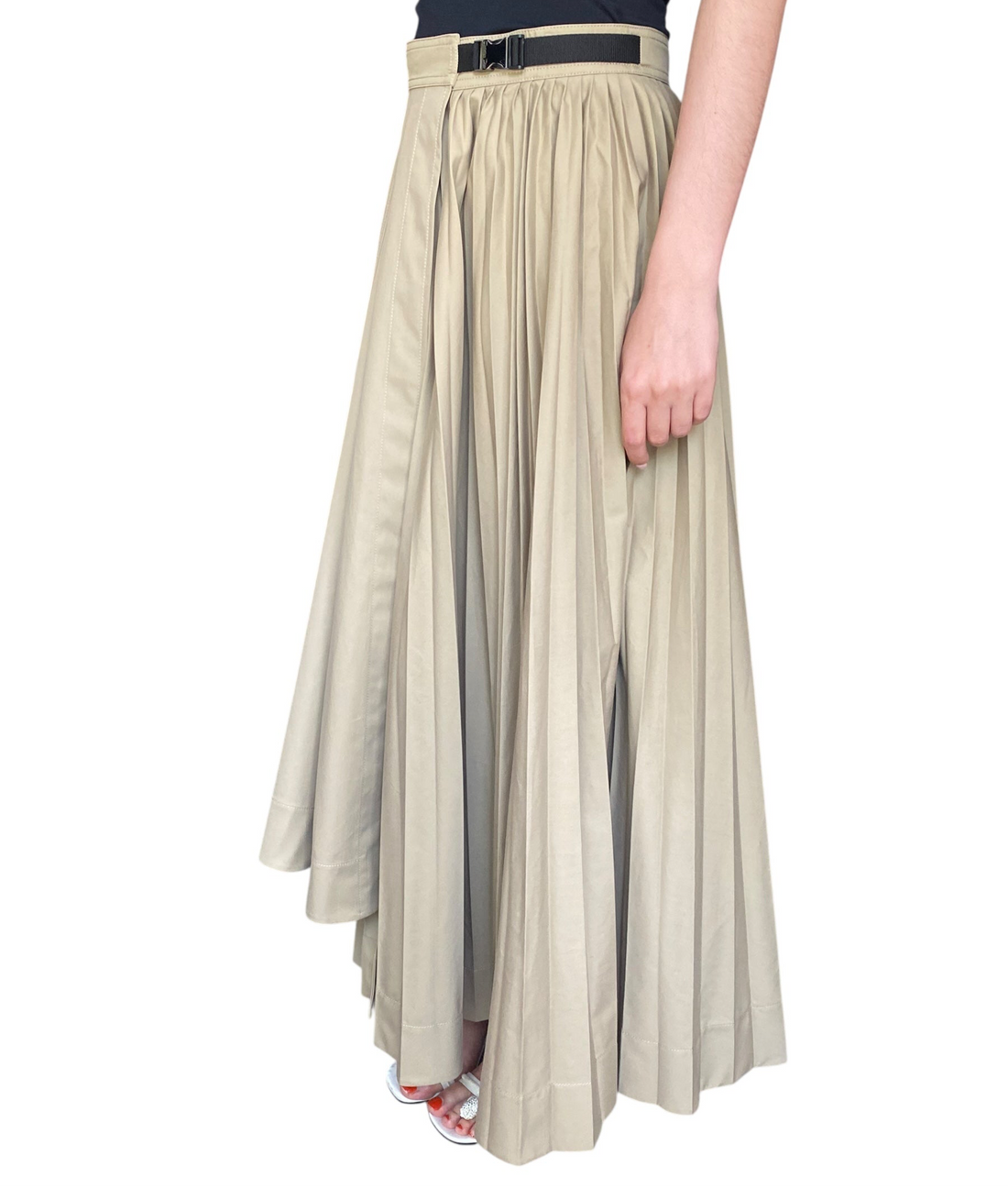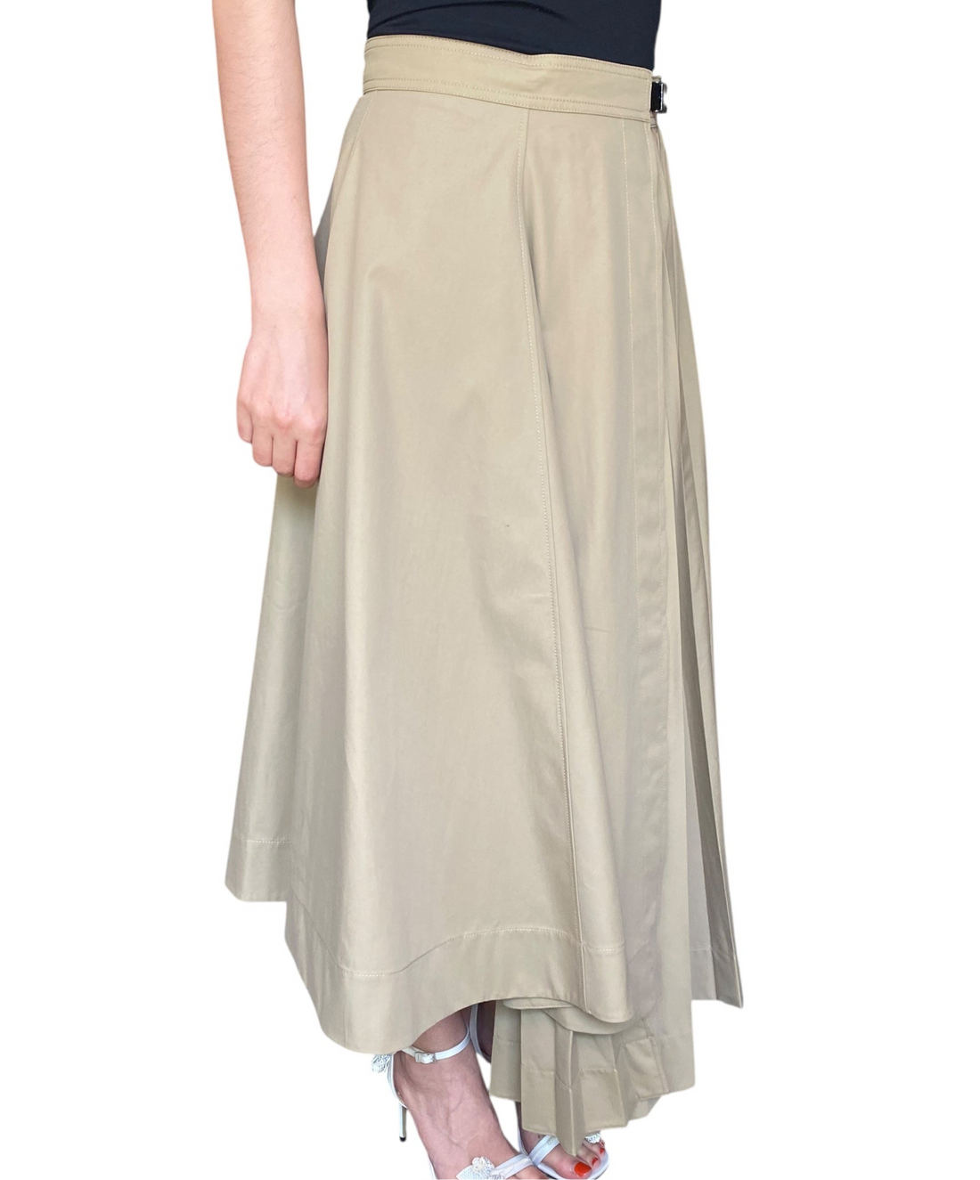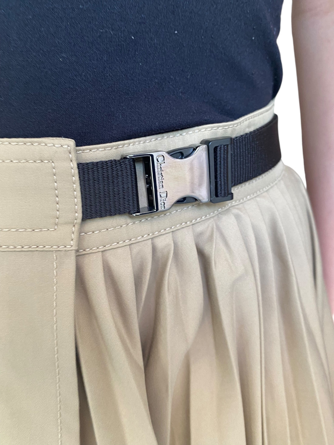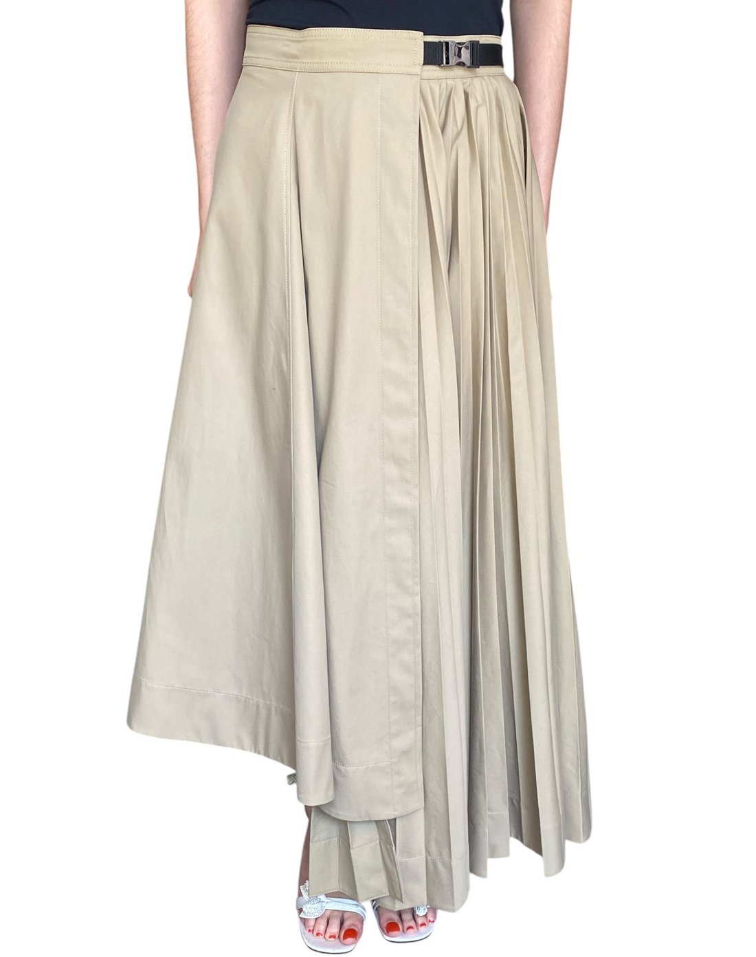 Dior Beige Pleated Cargo Maxi Wrap Skirt. Beige cotton wrap skirt with asymmetrical pleated detail. Silver hardware buckle belt closure. Maxi length and 100% Cotton.