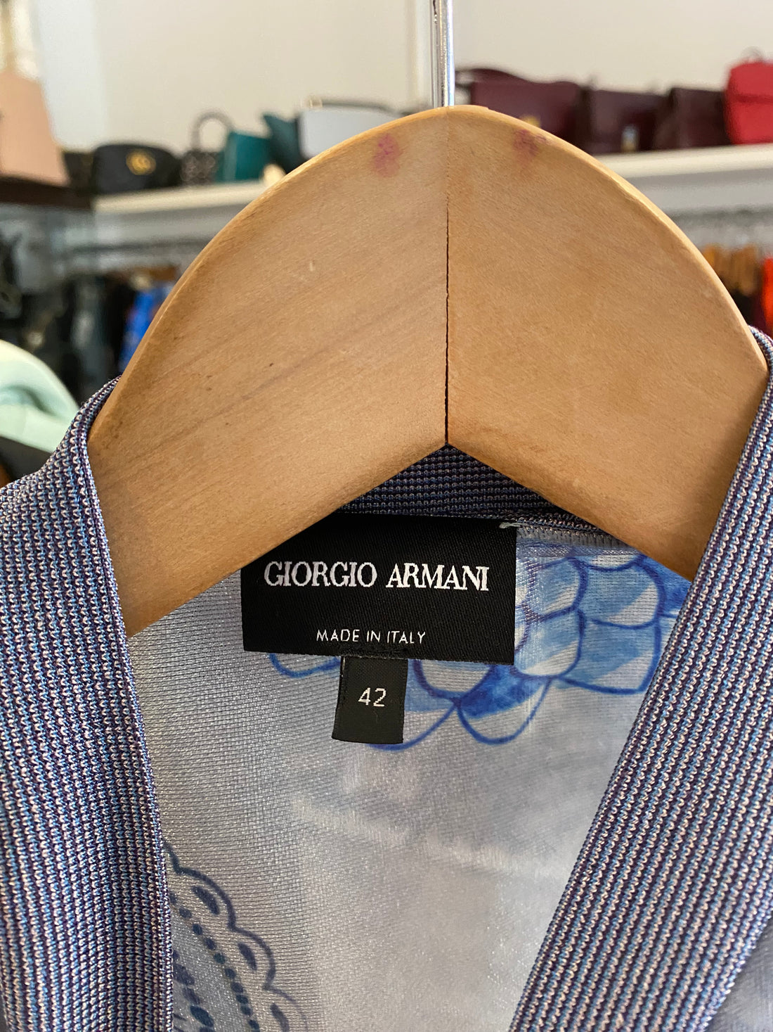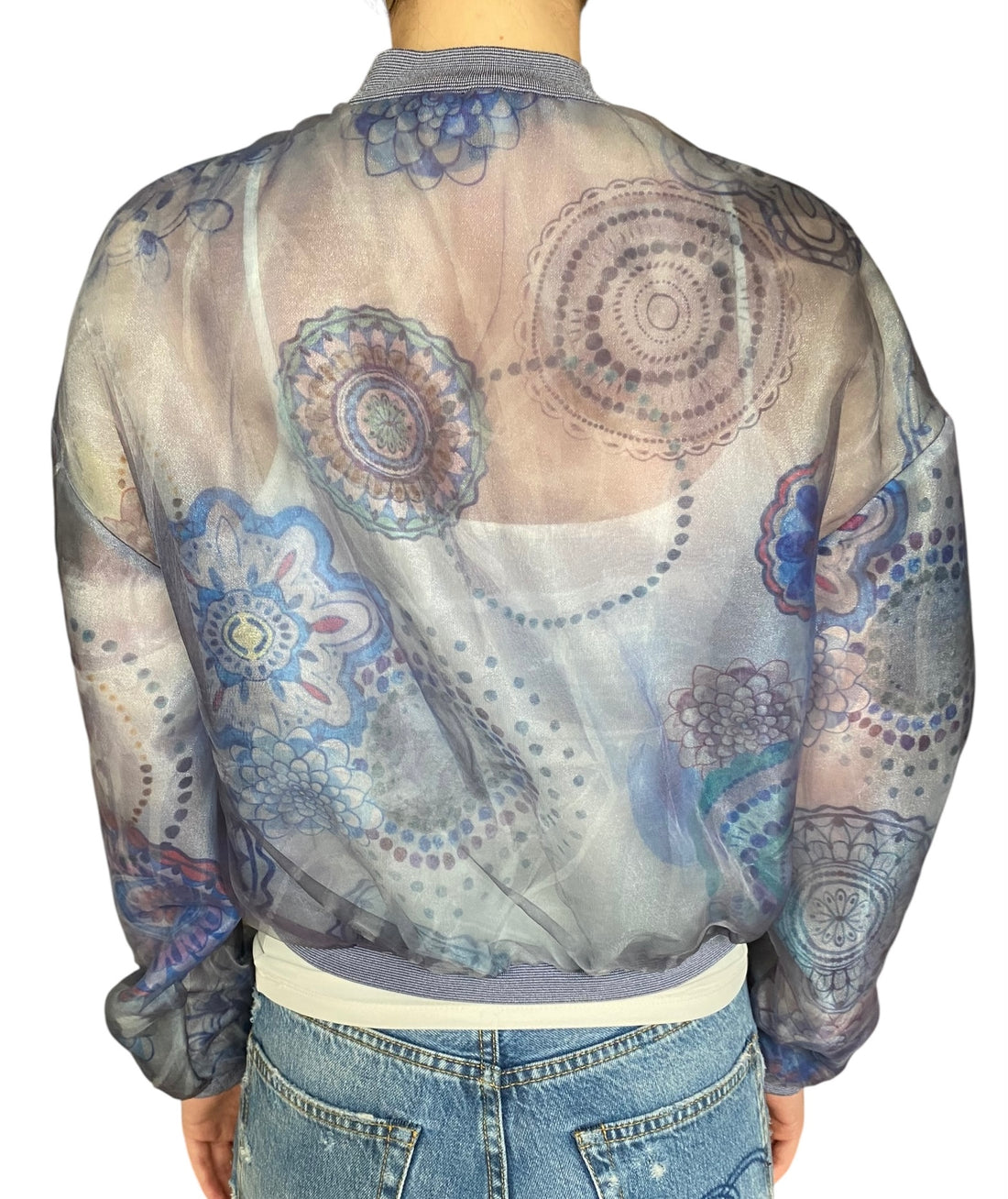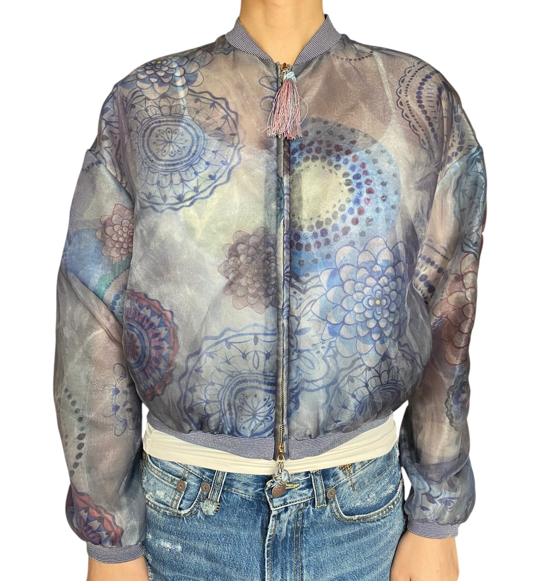 Giorgio Armani Blue Organza Printed Bomber - 42 / US 6