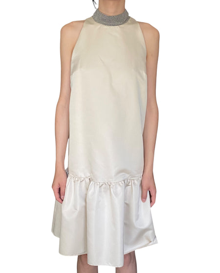 Jason Wu Colour-blocked Crepe and Lace Mini Dress. Colour-blocked design with black corded bouquet lace detail at bust. White bonded crepe circle skirt. 82% Cotton, 15% Viscose, 3% Polyamide. Marked size US 8.