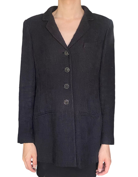 Yves Saint Laurent Fall 1987 Vintage Pink Satin Quilted Jacket. Pink quilted jacket with purple quilt contrast interior, strong padded shoulder, worn open with no closure. Marked size FR40 but can fit overall L (8/10/12). Garment chest 42”, shoulder seams 20”, sleeve 22.5”. Material content tag removed but likely a poly satin. Very good previously owned vintage condition. Without original packaging.