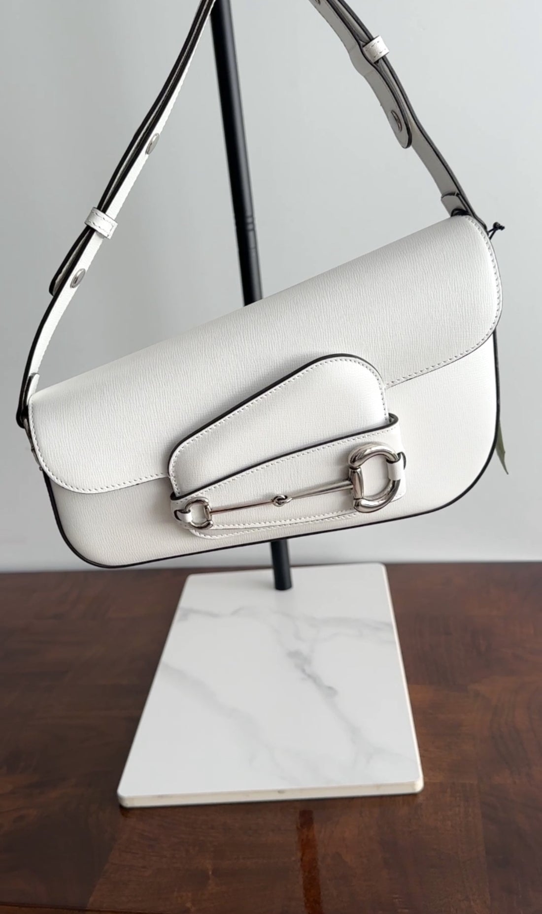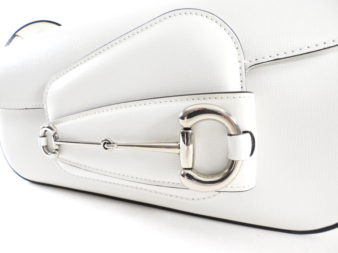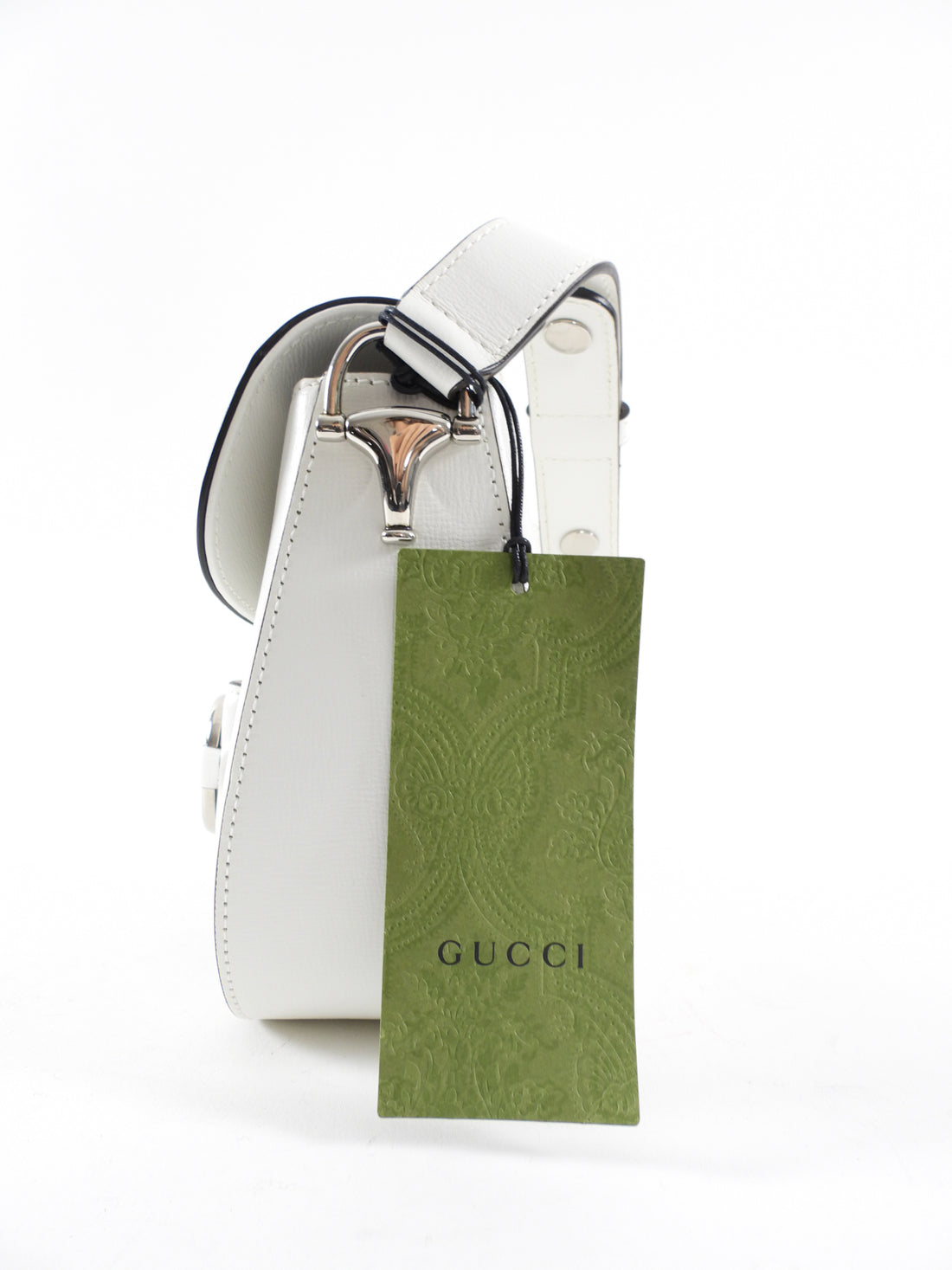 Gucci Horsebit 1955 White Leather Asymmetrical Bag
