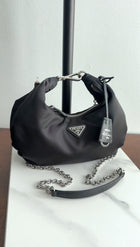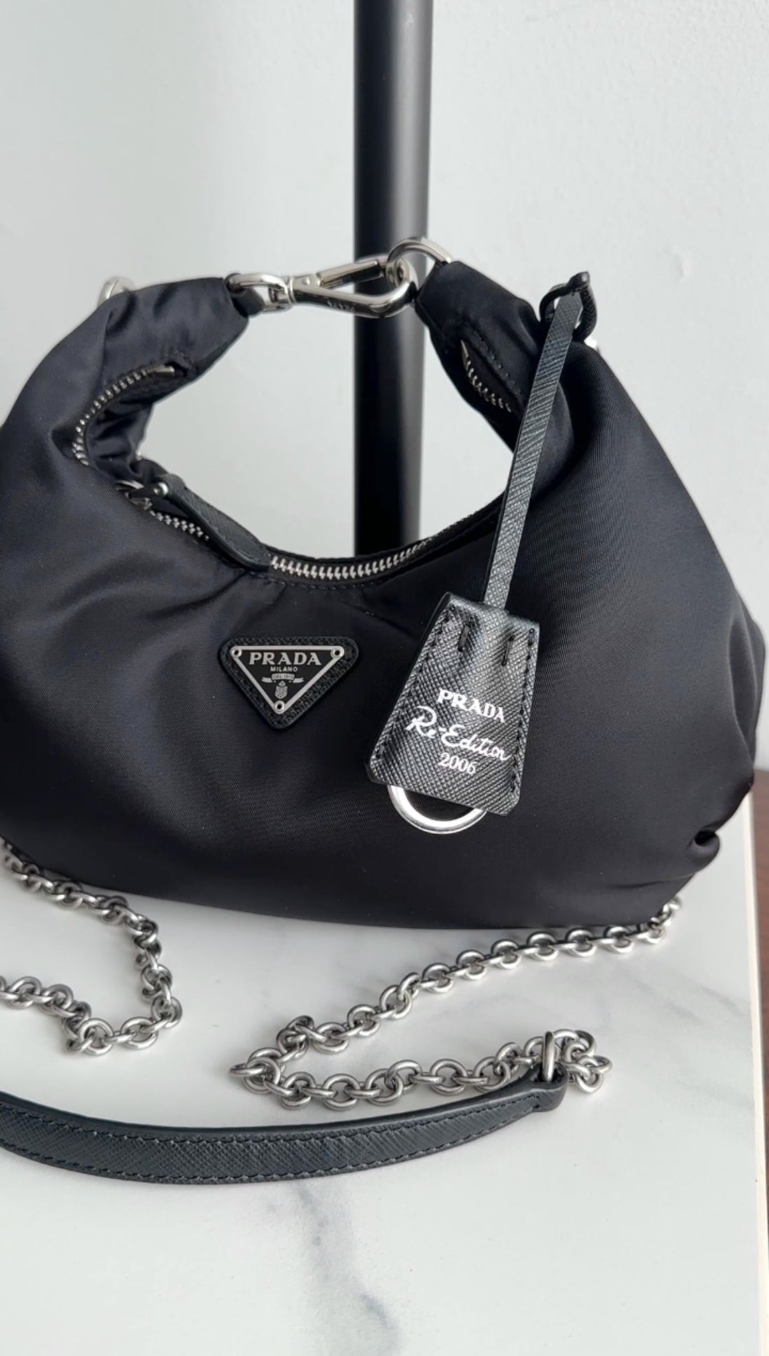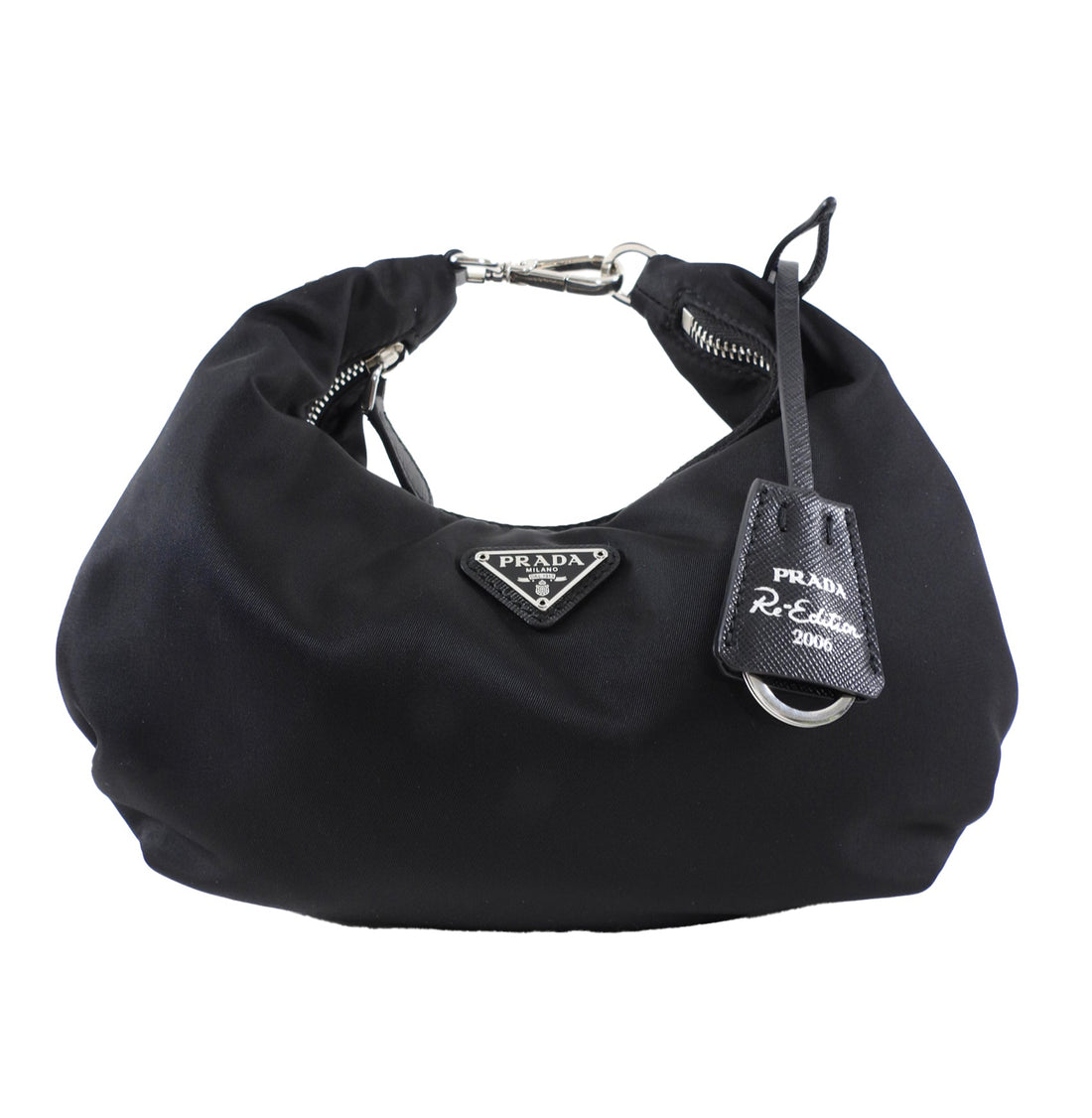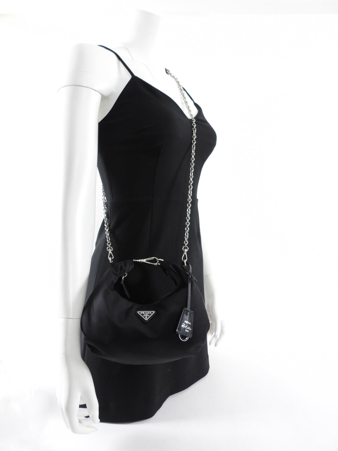 Prada Black Nylon Re-Edition 2006 Chain Hobo Bag