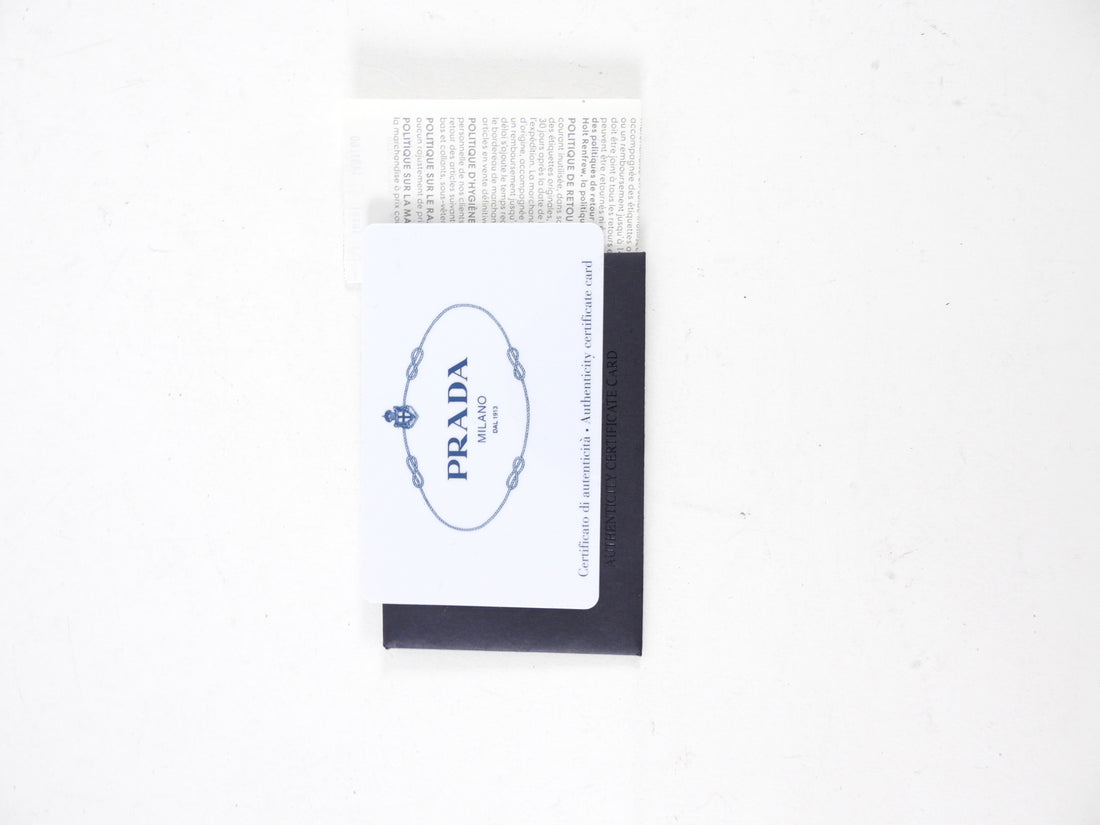 Black nylon and saffiano leather with silvertone hardware. Triangle logo plaque at front. Zip top closure with clasp. Chain strap with leather shoulder pad, can be doubled. Leather clochette key ring with Re-Edition 2006 graphic. Black nylon interior lining.